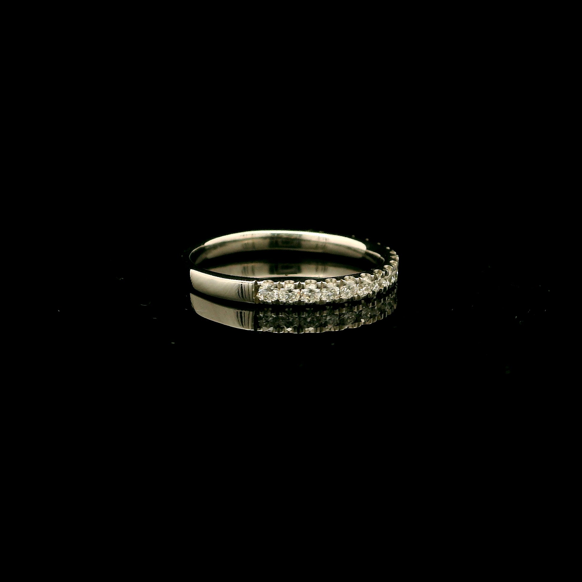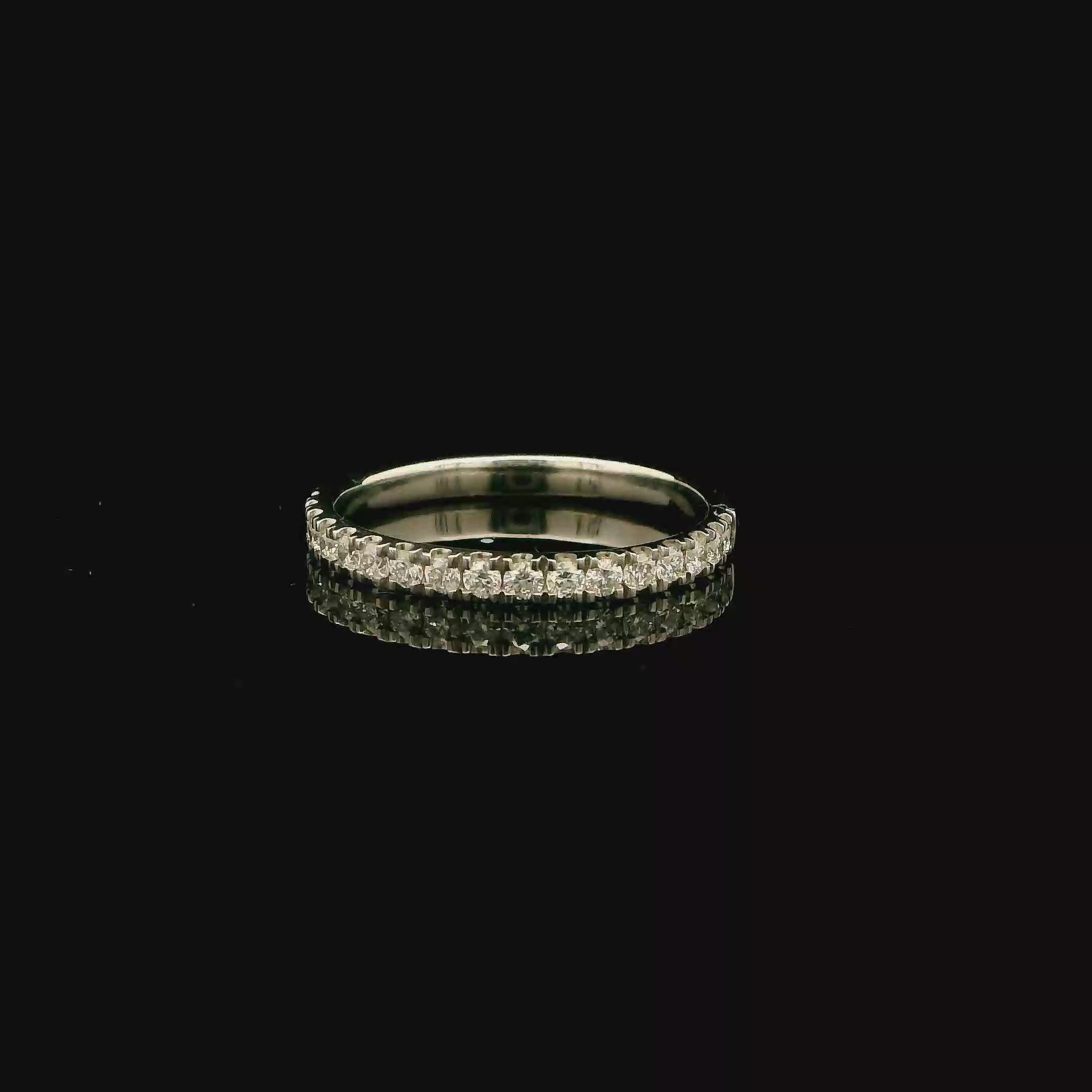 Crafted in hallmarked Platinum 950, this elegant 1.8mm band features a 0.20ct half-set of G VS round diamonds. A timeless design ideal for weddings or stacking, offering brilliant sparkle with refined simplicity. Ring size M. Available in various carat weights, metals, and sizes—custom options upon request.
