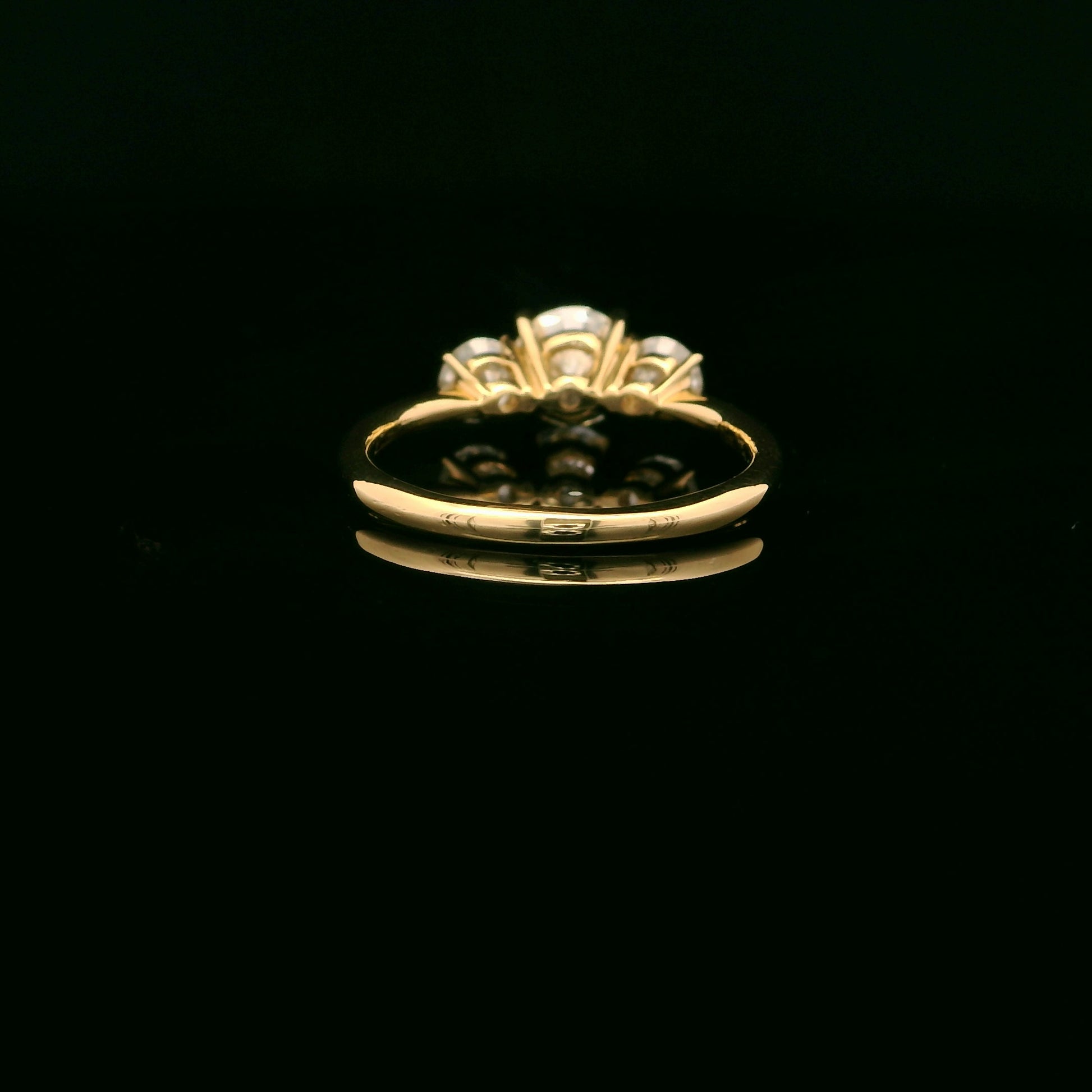 Celebrate timeless elegance with this 1.30ctw Trilogy Engagement Ring. Featuring a 0.78ct I VVS2 GIA-certified center diamond and two 0.26ct F VS round side stones, all set in 18ct hallmarked yellow gold. A perfect symbol of past, present, and future love with exquisite brilliance and craftsmanship.